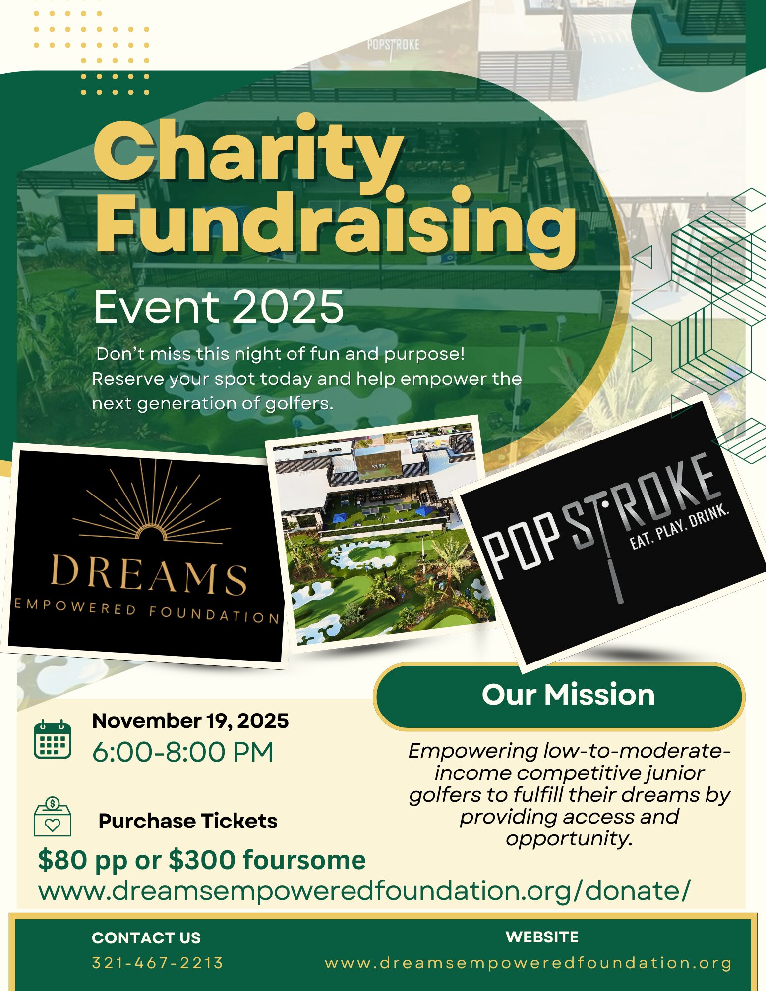 Dreams Empowered Foundation is bringing people together at PopStroke Hamlin for our annual fundraiser supporting junior competitive golfer families with financial needs.