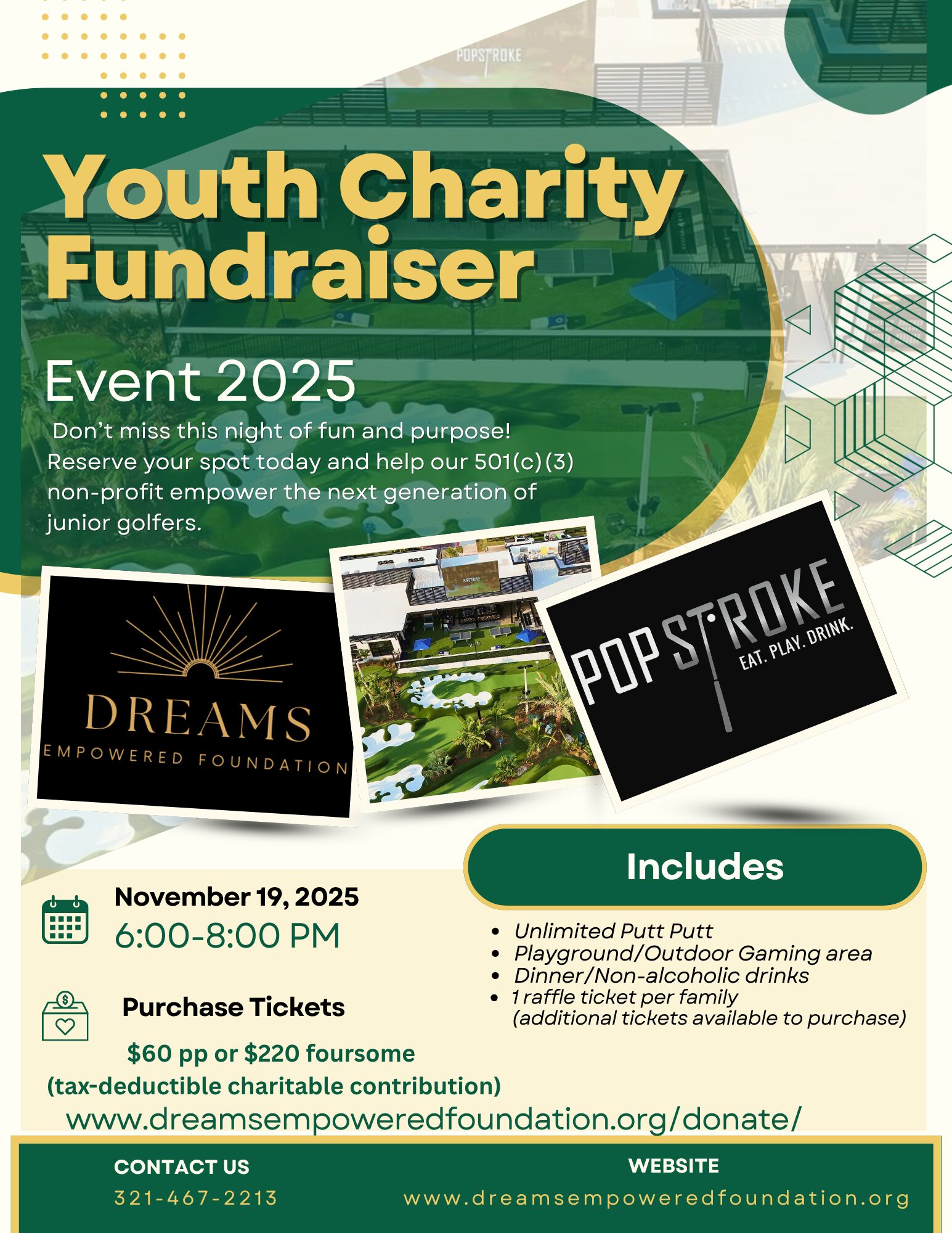 Dreams Empowered Foundation a 501 (c)(3) non-profit organization is bringing people together at PopStroke Hamlin for our annual fundraiser supporting under resourced junior competitive golfer families.